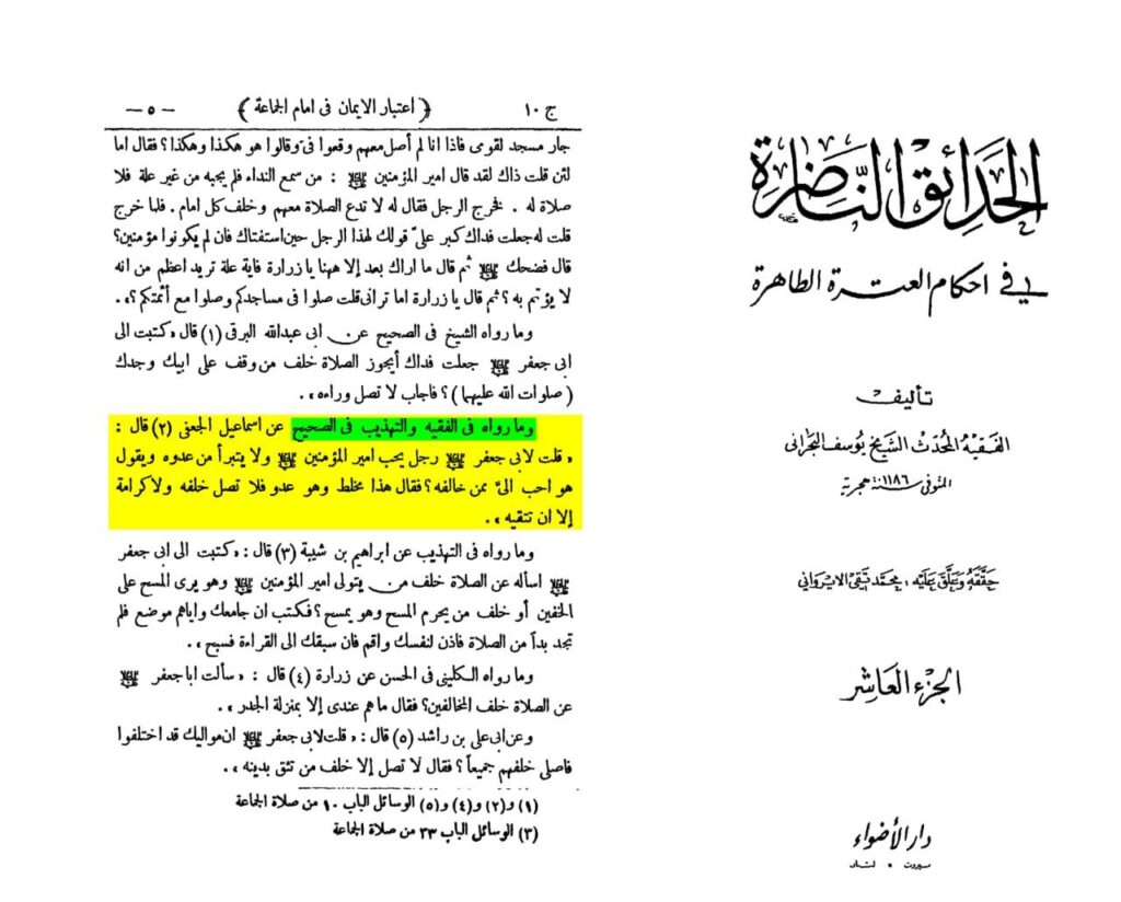 اور اس روایت کو شیخ صدوق نے الفقیہ میں اور شیخ طوسی نے التهذیب میں سندِ صحیح کے ساتھ اسماعیل جعفی سے نقل کیا ہے، وہ کہتے ہیں: