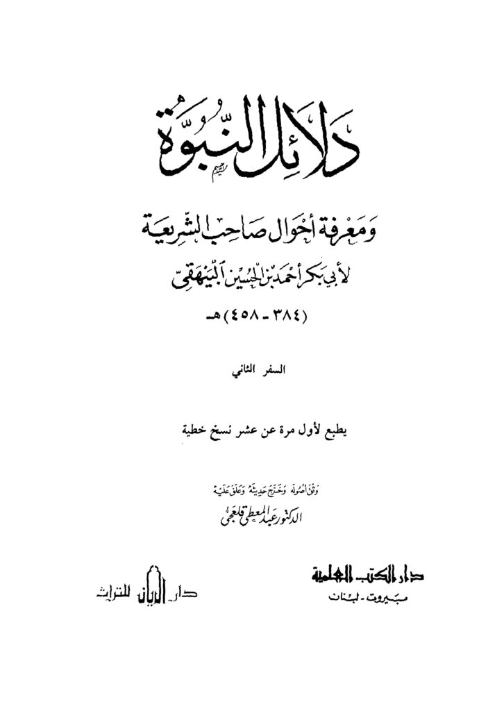الكتاب: دلائل النبوة ومعرفة أحوال صاحب الشريعة