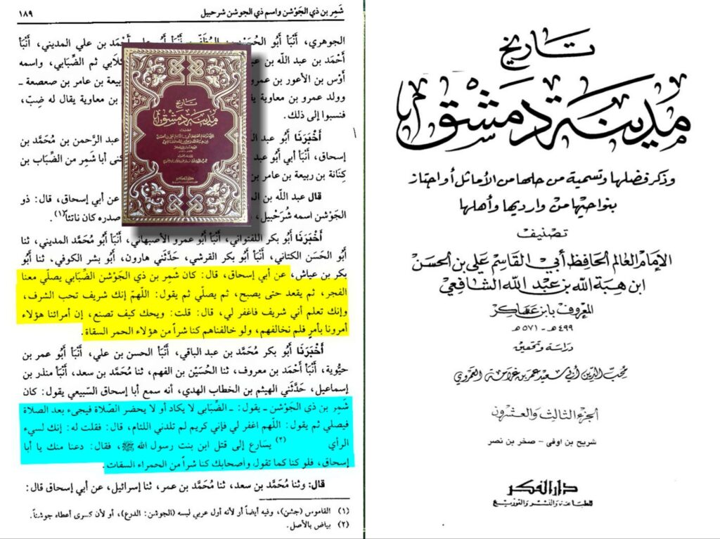 (الكتاب: تاريخ مدينة دمشق، وذكر فضلها وتسمية من حلها من الأماثل أو اجتاز بنواحيها من وارديها وأهلها