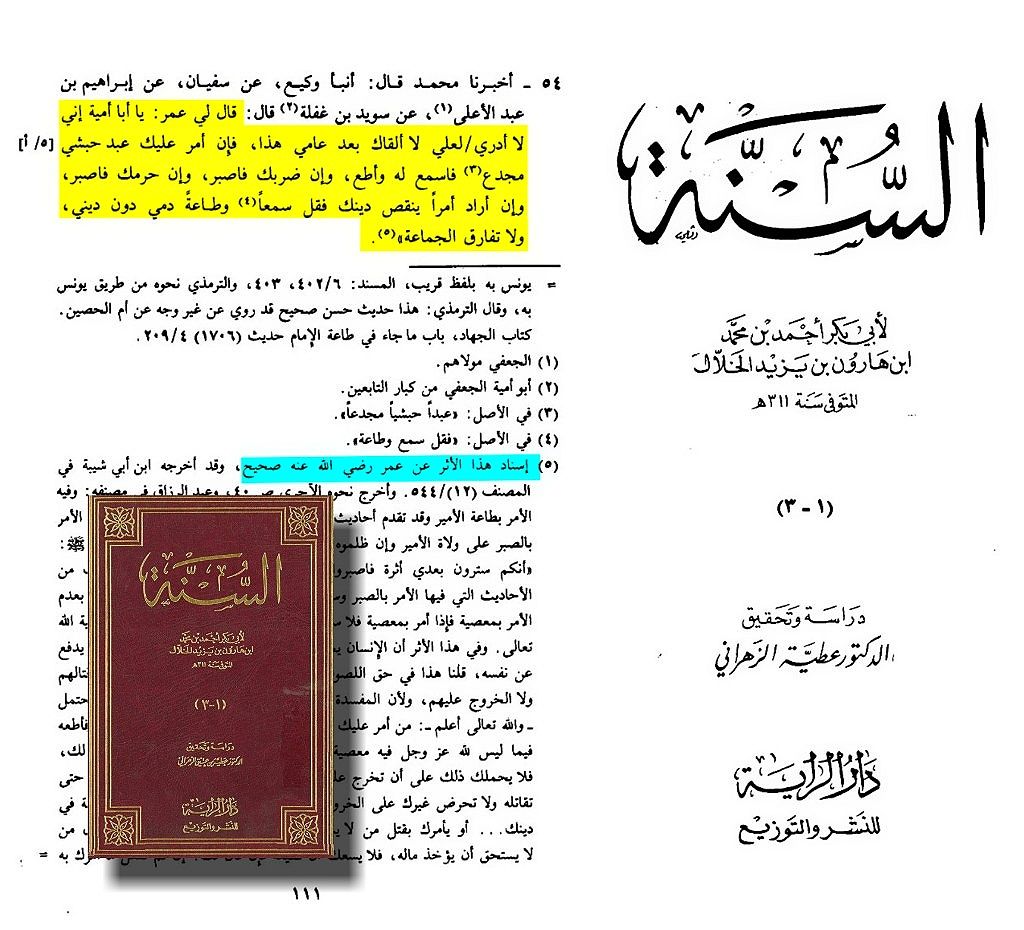 مثال کے طور پر، روایت ہے "سوید بن غفلہ” سے کہ وہ کہتا ہے: عمر بن خطاب نے مجھ سے کہا: