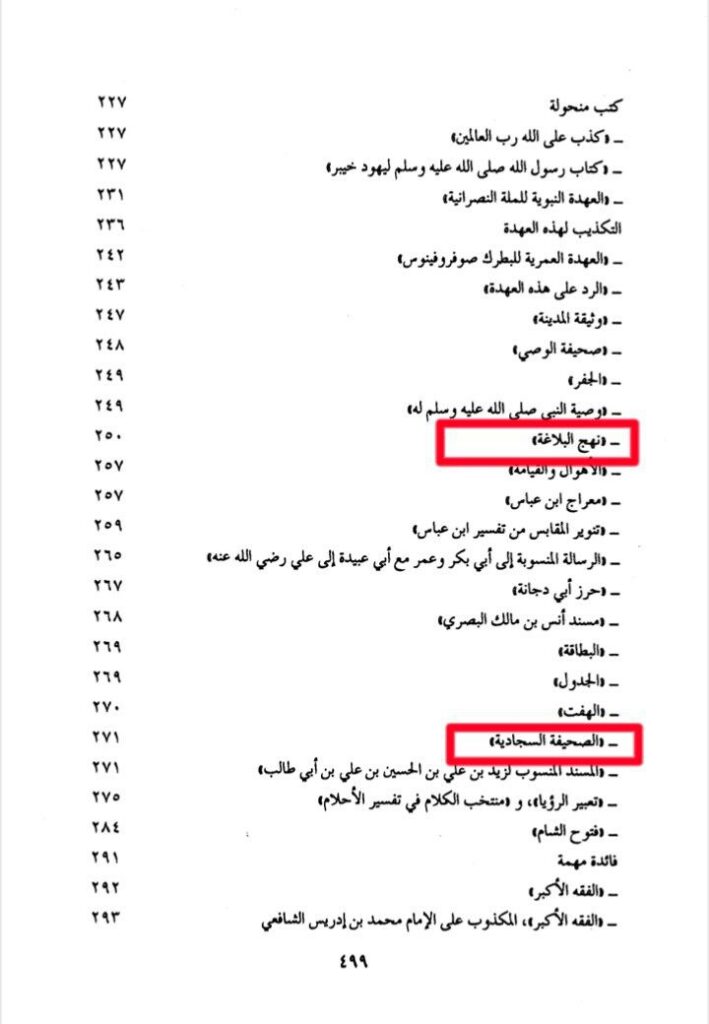 وہابی عالم حسن آل سلمان نے ایک کتاب لکھی ہے جس کا نام ہے "کتب حذر منها العلماء” (وہ کتابیں جن سے علماء نے خبردار کیا ہے)۔ اس میں ان کتابوں کا ذکر کیا گیا ہے جنہیں اہلِ سنت کو نہیں پڑھنا چاہیے، اور بعض کتابوں کے بارے میں کہا گیا ہے کہ انہیں پڑھنا شراب پینے کی طرح حرام ہے۔ ان میں "نہج البلاغہ” (جو امیرالمؤمنینؑ کے اقوال پر مشتمل ہے) اور "صحیفہ سجادیہ” (جو امام سجادؑ کی دعاؤں پر مشتمل ہے) سمیت اہلِ بیتؑ سے متعلق دیگر آثار بھی شامل ہیں، جن کے مطالعہ کو حرام قرار دیا گیا ہے۔